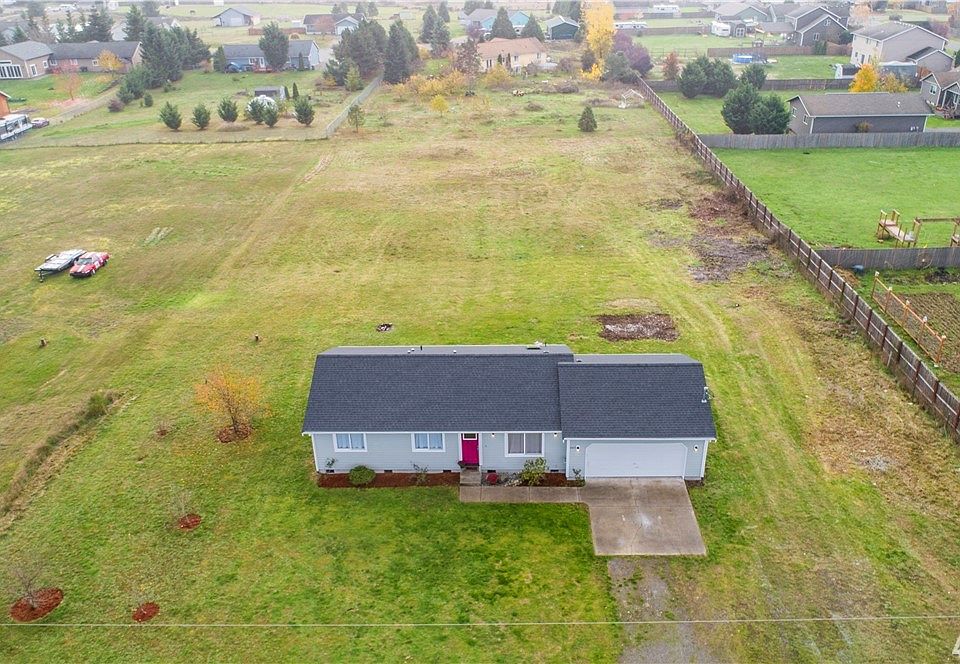 Charming 1997 Rambler w/tongue/groove bamboo floors, 3 bedrooms, 2 full bathrooms on large acre plus level lot with Mt Rainier view from the front door! Recent renovation to include: New roof, exterior paint, interior paint, carpet, new stove & dishwasher, granite counter-tops, bathroom vanity, and more. Here is that 1.15 acre lot you've been looking for w/room for shop, RV parking, equestrian...whatever your dream may be. Minutes to I-5. This is a clean, turn-key, like new home. Come and see!