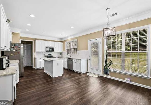 Huge islandOpen conceptLarge walk-in closetSs appliancesSpacious secondary bedroomsWhite cabinetsGranite counters