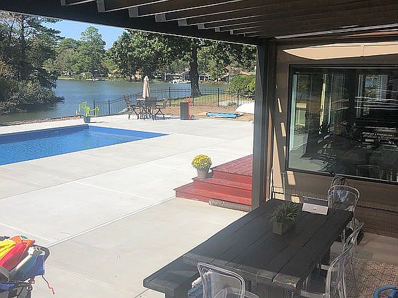 Waterfront home on Lake Joyce . Professional remodel entire property inside and out completed in 2020. New electric, plumbing, insulation, windows with custom shades, LED lighting, refinished hardwood floors ,kitchen with waterfall quartz island stainless professional appliances custom flat pattern cabinets, bar, built in cabinets,bathrooms, 3000 sq ft of concrete, custom rectangular pool, pool cabana, dock , bulkhead, landscaping