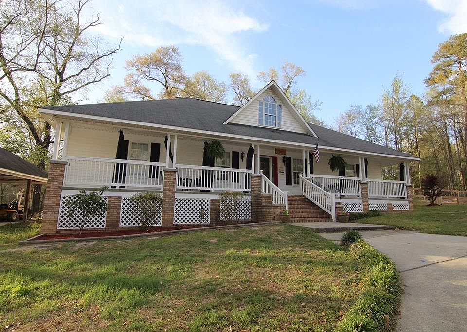 CLASSIC BEAUTY! This beautiful 3 bedroom/2 bath home is situated on a secluded 2.94-acre lot with a fish pond and woods that offer a truly peaceful atmosphere. The home has been recently updated with new flooring, paint, counters, etc. and features an open floor plan and large living areas. The rocking chair front porch stretches the length of the home and is accented by brick-base pillars and double columns. The back of the home opens up to a screen porch and a deck that overlooks the rear of the property. A free-standing carport is situated to the side of the home, and an enclosed workshop has concrete floors and power. The small pond is stocked and prime for easy afternoons spent fishing from its covered dock. This property is a rare gem these days, given the home's classic design, lot size and pond, and it's priced to sell!