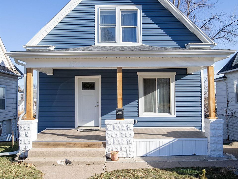 This Cozy 2 bed 2 bath home features a spacious living room & dining room with beautiful hardwood flooring. A kitchen with a pantry. A partially finished walk out basement with 2 non comforming rooms, large laundy room and an updated 3/4 bath. The updates include newer windows (except kitchen and pantry.) 2nd floor full bath and front door. New in 2022 is the furnace & A/C, roof, gutters & siding. Front parking pad and alley access to garage and additional parking. Basement finished square feet is approximated. Sold as is.