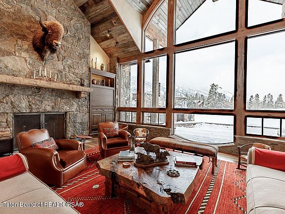 The Tetons are calling! Experience unobstructed Teton views from the great room, with full height, north facing picture window overlooking the patio, large pond, 18th fairway, and The Grand. This home feature a completely remodeled kitchen with 6-burner gas stove, Sub-Zero Refrigerator, and freezer, 2 dishwashers, 2 below counter Sub-Zero wine coolers; counter and island with granite tops, and an amazing walk-in pantry, to name just a few features. The dining room, with French doors leading to the stunning dual height patio constructed of Pennsylvania blue stone, with a wood burning fireplace, pizza oven, plus outdoor catering kitchen with a 42'' grill, granite countertop and Montana Moss rock base.