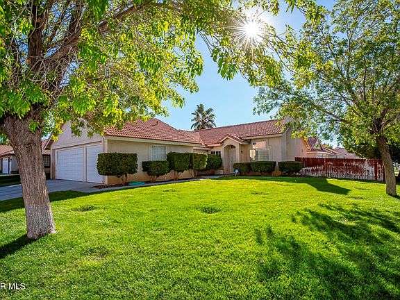 Welcome home to this sprawling ONE story, ideally located on a spacious corner lot! Lush front yard, mature shade trees, and green landscaping abounds! Enjoy all the benefits that come with NO HOA and still enjoy a beautifully maintained quiet neighborhood. This turnkey property boasts loads of potential. Featuring a direct access 3 car garage, woodlike flooring, vaulted ceilings, fireplace, and an expansive additional room/office/den with high ceilings. Charming architectural details and ideal natural lighting throughout. Dining area features plantation shutters and slider to concrete rear patio with attached pergola! Rear yard is ready to live up to its full potential. Bring your vision to life with the wrap around spacious yard! Classic white kitchen boasts oak cabintery and well maintained white tile counters w/ undermount ceramic sink. Newer SS gas range! Neutral paint throughout. Newer water heater, recessed lights, ceiling fans! Property is located nearby shops, restaurants, businesses, local schools, parks, Antelope Valley College, Cal State Bakersfield satellite campus, Museum of Art & History, Rancho Vista Golf Course,14 Fwy acccess and so much more! Come see why this well-lived and loved home is waiting for your vision and touch!