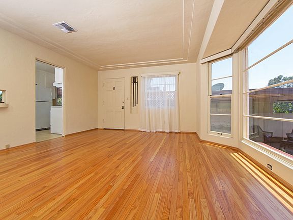 Vintage Rolando Village charm with bay windows, coved ceiling, pocket doors, original red oak floors, and covered patio and shade porch for outdoor living. Enjoy the sunset view all the way to the ocean and twinkling Coronado Bridge lights after dark. Central heating and air conditioning Washer, dryer, storage, and EV charger in large locking garage. Extra off street parking Completely fenced yard for small dog. Gardening included Three bedrooms/One bath with the third bedroom a large 200 sqft bonus room that attaches to the house and has a separate entrance and it's own built-in counter and sink. Walkable, Quaint Rolando Village has sidewalks, gas lamps, a great community spirit with street fair, Halloween and holiday fun House is two blocks from Kroc Center, pools, gym, childcare and activities 20-minute drive to downtown San Diego, airport and close to transportation, shopping, and La Mesa Village Biking distance to SDSU and lots of eateries and shops! Low maintenance yard tenant to pay utilities and water Will require a pet deposit depending on the pet One year lease required, tenants to pay utilities, owner will provide Gardner, small dog only, pet deposit required.