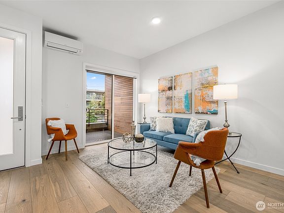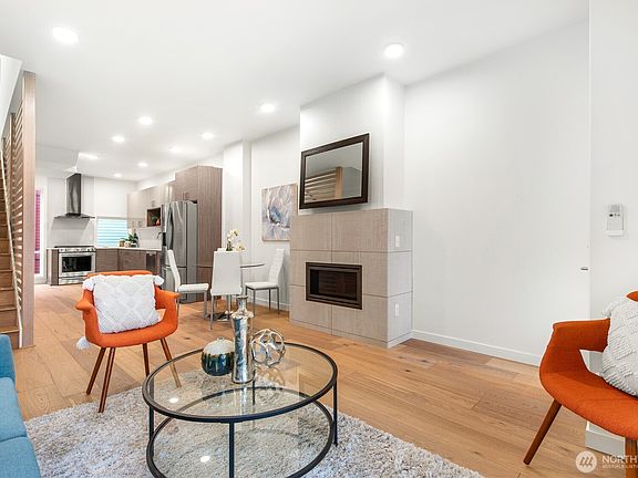 Sleek and Modern built-green townhome in the heart of Fremont with no HOA dues! Views of Mt. Rainier, Lake Union and the Seattle skyline from the private 550 sq/ft rooftop deck. The open concept kitchen is great for entertaining with lots of storage and counter space. Hardwood floors throughout main level. The spacious primary bedroom takes up an entire floor with a spa-inspired bathroom with wet room, two shower heads and dual sinks. Lower level has 2 additional bedrooms, ¾ bath and exterior entrance. All this plus fully fenced yard, exterior storage unit, 1 car garage plus additional off-street parking. Close to shops, coffee, Greenlake and Zoo.
