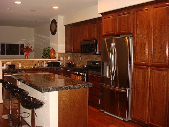 + Gourmet kitchen with granite counter-tops, island with built-in breakfast bar and plenty of cabinet space