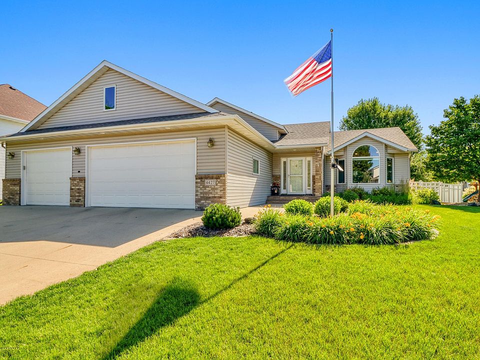 Welcome to this beautifully maintained 4-level split in North Fargo’s peaceful Riverwood development! With nearly 2,900 sq ft of living space, this 5-bedroom, 3-bathroom home offers room to stretch out, relax, and enjoy. The main level features vaulted ceilings and includes the kitchen, living room and dining room with direct access to the backyard patio. You'll love the newer appliances, under-cabinet lighting, and the thoughtful layout. Upstairs, the spacious primary suite includes a private bathroom with double sinks and a walk-in closet. There are also two additional bedrooms and another full bath. The lower level offers a warm and inviting family room (with new carpet!), fourth bedroom, full bath, laundry room, and convenient access to the heated, finished 3-stall garage—complete with a floor drain and a walk-up to a storage loft. The basement adds even more living space with a rec room, fifth bedroom, and plenty of storage. Outside, enjoy the larger-than-average fully fenced yard with a patio, basketball court, storage shed, and underground sprinklers. Whether you're shooting hoops, hosting a BBQ, or simply relaxing with your morning coffee, the backyard is the perfect place to unwind and enjoy your surroundings. New shingles and A/C system in 2020. Don’t miss your chance to own this fantastic, move-in ready home in a quiet, established neighborhood. includes outdoor playset.