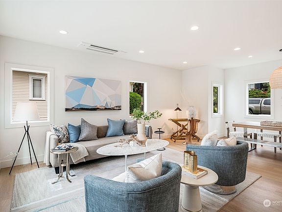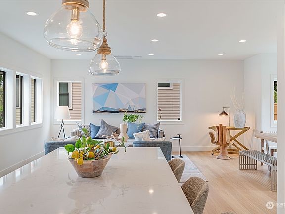 Top-line finishes and thoughtful spaces abound in this stunning new construction home on a quiet residential street tucked between Fremont and Ballard. Entertainer's kitchen featuring Bertazzoni appliances and large island with seating opens to bright and airy living and dining spaces. Head upstairs to find three bedrooms on the same level including a sumptuous primary suite. Roof-top retreat features bedroom with ensuite bath and lounge space that opens to large deck with gorgeous westerly views of Puget Sound and the Olympic Mountains. Oversize two-car garage, wired for electric car charging enjoys ample shop space. Large unfinished area offers storage options or future wine cellar. Simplicity, style and craftsmanship can be yours!