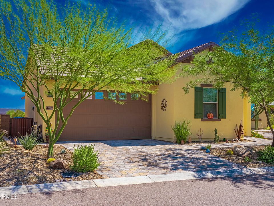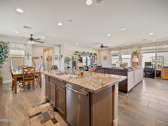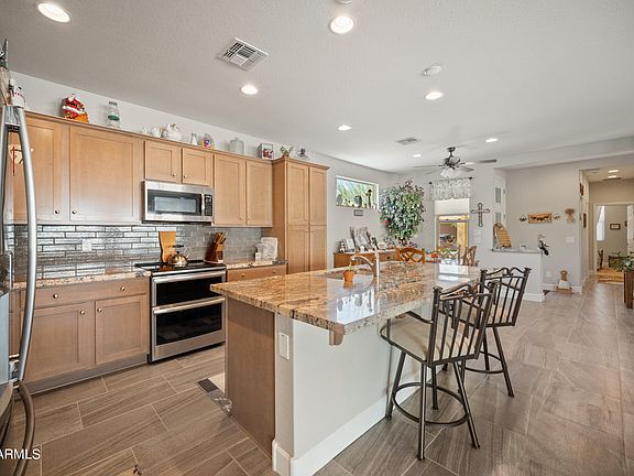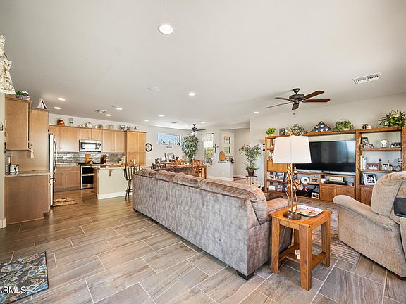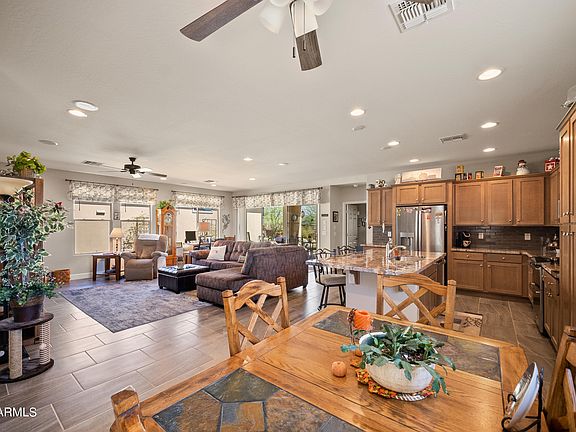 First time on the market! Live the resort lifestyle at Wickenburg Ranch with this affordable home in the Pinto neighborhood. This Shea built house is open concept with a split bedroom floor plan. The sliding glass doors open to the covered cobblestone patio which feels very private, and has views. The kitchen has granite countertops, subway tile backsplash, double oven, and an island with an under-mount sink & a breakfast bar. A very well maintained home with tile floors and lots of natural light. Gather with neighbors and the end of the cul-de-sac to view fireworks being launched over Wickenburg this 4th of July!