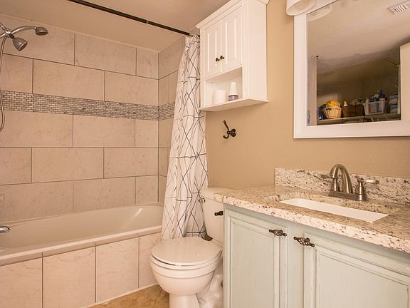 Discover the perfect blend of comfort and modern living in this beautifully updated 1-story home, featuring 3 bedrooms and 2 full bathrooms. Interior Highlights - Inviting Family Room Cozy up by the wood-burning fireplace in the spacious family room, adorned with elegant laminate wood flooring. - Modern Kitchen The kitchen boasts stainless steel appliances, granite countertops, a stylish tile backsplash, a stainless steel sink and faucet, and white cabinets with new hardware. The large pantry offers ample storage space. - Dining and Living Area Enjoy seamless entertaining with the dining area opening up to a spacious backyard, complete with a fire pit ideal for family gatherings and outdoor fun. Recent Upgrades - Fresh paint throughout the entire home. - Kitchen: New flooring, granite countertops, tile backsplash, stainless steel sink and faucet, and white cabinets with updated hardware. - Bathrooms: New tub and shower, stylish tile work, modern hardware, granite countertops, new sinks and faucets, and enhanced lighting. Outdoor and Location Benefits - Spacious backyard with a fire pit, perfect for entertaining and family activities. - Prime Location Enjoy unique shopping and dining experiences at Grandscape-The Colony, located just a few minutes away. Easy access to HWY 121, Nebraska Furniture Mart, Hawaiian Falls, and Top Golf. Experience modern living in a vibrant community. This home is ready to welcome you! Min. Lease Duration: 11 months - Max: 3 Years