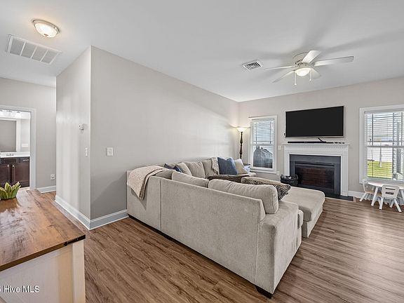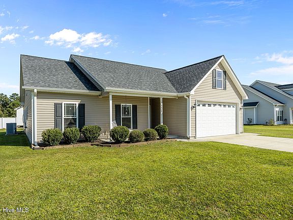Discover your beautiful dream home in this meticulously maintained 3-bedroom, 2-bathroom residence. Complete with a covered rocking chair porch and covered rear patio and attached 2-car garage with pull down storage plus an array of desirable extras. The large open floor plan invites you to experience a seamless flow between living spaces, perfect for both entertaining and everyday living. The heart of the home, the kitchen, boasts stunning granite countertops, a generous walk-in pantry, and sleek stainless steel appliances, making it a treat to feed your family or host a gathering. The freshly painted primary bedroom is a true retreat, featuring a large walk-in closet and an en-suite bath equipped with a double vanity, separate tub, and separate walk-in shower for your ultimate comfort. Throughout the main living areas, you'll find luxurious LVP flooring, while new carpet has just been installed in all three bedrooms, ensuring a fresh and inviting atmosphere. Additional highlights include new LVP flooring in the designated laundry room and both bathrooms, a cozy fireplace for those chilly evenings, and a rare additional walk-in hall linen closet for extra storage.