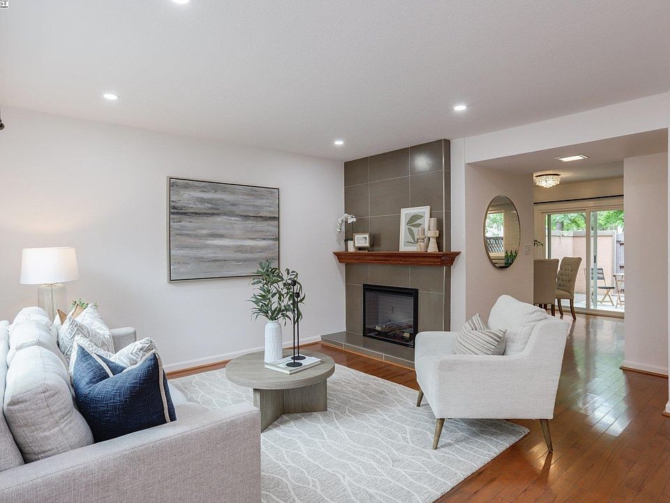 Prime Pleasanton location. Walking distance to Amador High and downtown Pleasanton. Minutes away from main street dining, shops, and entertainment. This townhome is 3 bedrooms and 2.5 baths. Only unit in this community with 2.5 baths. Extra bathroom is built with permits. It has dual pane windows, recessed lights, granite countertops, central air conditioning, mantle fireplace and much more. Classic engineered hardwood floors. Dedicated parking spaces (carports) right in front of the unit and a private fenced courtyard. Surrounded by nature and Right next to a Creek for walks . Brand new floors for all three bedrooms and fully remodelled bathrooms. House has been freshly painted. Spacious patio with storage closet has a beautiful natural stone tile floor. Friendly longtime neighbors, exceptional schools, convenience & walkable distance to many amenities makes this home a very rare find.