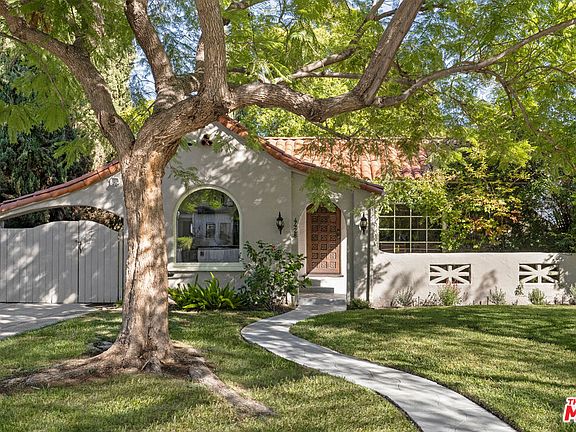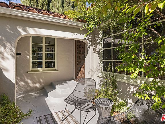 On a quiet tree-lined street in Studio City, this 1930 Spanish home radiates timeless charm and romance. Set behind a leafy front courtyard, the spacious residence is a study in period character with arched details, wood floors, and a sun-filled living room crowned by a pitched, beamed ceiling. The updated kitchen makes meal prep easy with generous storage and stainless appliances. Two spacious bedrooms provide versatility for life and work balance. Lush and private, the vine-laced yard is a dreamy setting for entertaining, alfresco dinners, and easy afternoons surrounded by greenery. The detached garage holds potential for a future ADU or creative studio. Modern upgrades include a new Ecobee HVAC system, central air, and new appliances. Located in the heart of Studio City within the Rio Vista Elementary boundary, this home places you moments from Aroma, Jon & Vinny's, and other neighborhood favorites in one of the Valley's most charming enclaves.