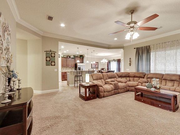 Smart Home Set-up, and Upgrades are everywhere in this 4 bed 2.5 bath home with an open floor plan and large living room featuring double crown molding. Recessed lighting, textured ceiling, bullnose corners, arched doorways, and carpet flooring. Kitchen has Granite countertops, Custom tiled backsplash, stainless appliances, breakfast bar, tile flooring, recessed lighting, and a large pantry. Master bedroom has French doors leading into 17.5 X 16 room, with crown molding, rope lighting, and recessed lighting. Master bathroom has a double vanity, garden tub, separate shower, large walk in closet. On the other side of the home you have 3 bedrooms and 1.5 baths. All bathrooms have marble tops and dark wood vanities. Beautiful Brick exterior with covered patio leading to the back yard