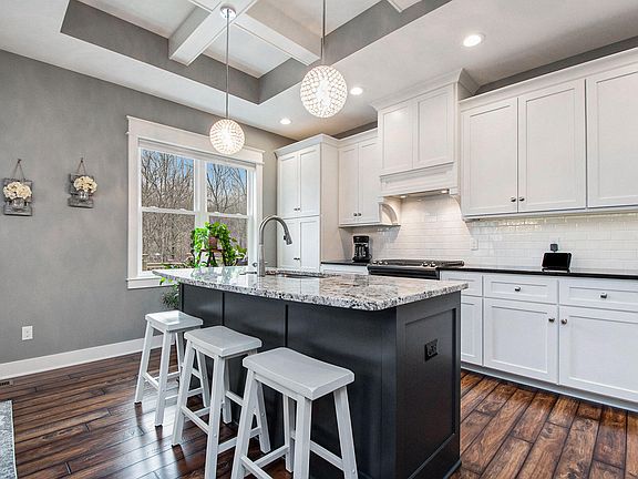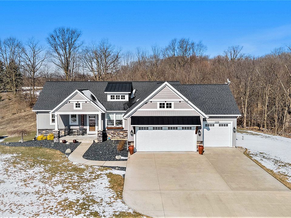 Set on a pristine 2 acre lot and a private drive with only 7 homes, 4428 Summit Pointe Ct is a 3200 square foot Sherwood Custom home featuring 4 bedrooms, 2.5 bathrooms and an attached 3 stall finished garage. The first floor consists of an open concept layout, a beautiful gourmet kitchen with stainless appliances, granite countertops and custom built cabinetry, a dining area with a beautiful chandelier which leads into the great room where you will love all of the attention to detail. There are custom tray ceilings, built-in cabinetry that surround the stone fireplace (gas) and a modern mantle. The main floor also includes the 2nd bedroom (currently used as office) and a luxurious primary suite, plus a mudroom with built-in's, a laundry room, and half bath. Downstairs, there are 2 generous sized bedrooms, an expansive recreation room with more custom woodworking, a wet bar with wine fridge and custom cabinets and a full bathroom.You don't want to miss the coveted screened in porch that overlooks the beautifully landscaped backyard. Outside, the property offers a beautifully manicured lawn w/ underground sprinkling that backs up to a wooded setting with a new brick patio w/ built-in fire pit.. * Fiber Optic Cable available & generator hook up outlet.You do not want to miss this opportunity!