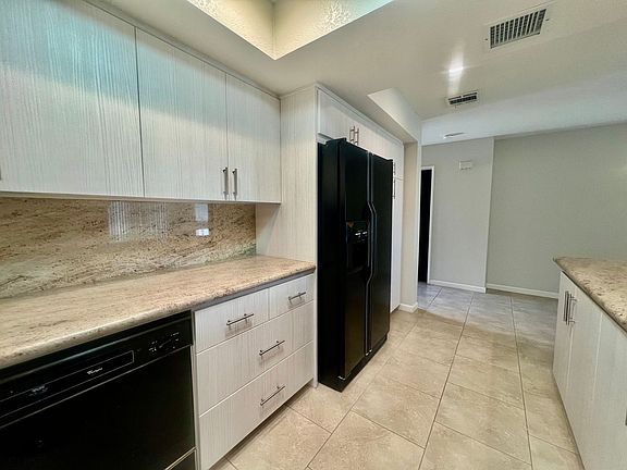 The condo features dual primary suites, each with custom tile bathrooms, providing a luxurious living experience. The open floor plan is complemented by a modern kitchen, equipped with granite countertops and backsplash, offering a perfect setting for entertaining or casual dining.