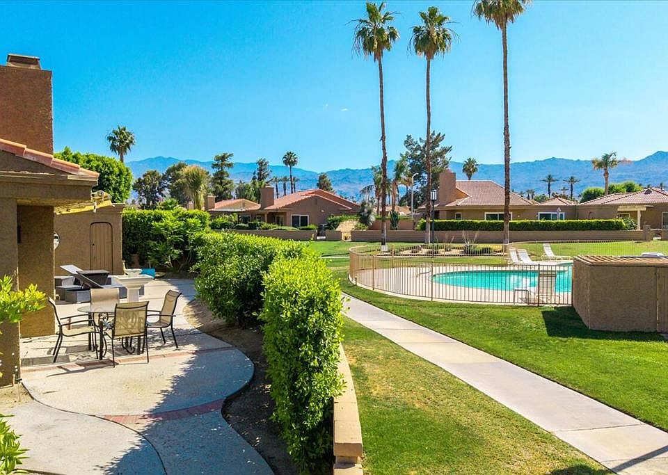 Tucked away on a quiet cul-de-sac in the gated community of Hidden Palms, this fully renovated 3-bedroom 2-bath home offers privacy and unbeatable location-just blocks from El Paseo, the ''Madison Ave'' of Palm Desert.The chef's kitchen includes new Bosch Cafe' Series appliances, black and white slab granite and a custom island with bar stools. Both bathrooms are completely redone. The living room features a brick gas fireplace, ceramic logs and stunning mountain views.Enjoy the secluded, west-facing garden with mature hedges, outdoor shower room and steps away from the community pool. Hidden Palms also offers tennis and pickleball courts, walking paths and lush landscaping with ponds and fountains. Furniture is negotiable No showings before Oct 1, 2025. Owner occupied.