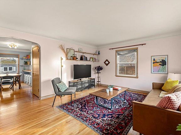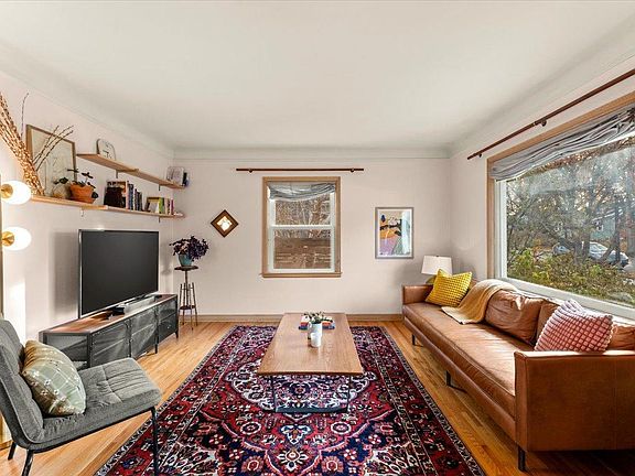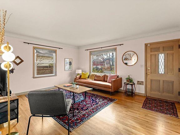 Check out this beautifully maintained 1950’s 1.5 story home, situated in the Regina neighborhood of South Minneapolis. The warm and inviting living room features a large picture window that fills the space with natural light and highlights the rich wood floors and original blonde doors and woodwork. The home offers two comfortable main floor bedrooms and a chic, colorful full bathroom. The eat in kitchen peninsula and informal dining room offer two areas for enjoying meals and provide a great space for entertaining. Butcher block countertops, fun light fixtures, and open shelving add fresh energy and style to the space. On the upper level, the spacious primary bedroom surprises with tall ceilings and wide wooden plank flooring— a pleasant and unexpected delight in a home of this size. Downstairs, you’ll find a cozy, wood-paneled family room and a very clean storage/laundry area currently used as a workout space. Outside, enjoy a private backyard surrounded by a handsome horizontal cedar fence and a stone patio. Newer roof!! Five blocks from scenic Minnehaha Creek and moments from the shops, restaurants, and more of 48th & Chicago. Come see!!