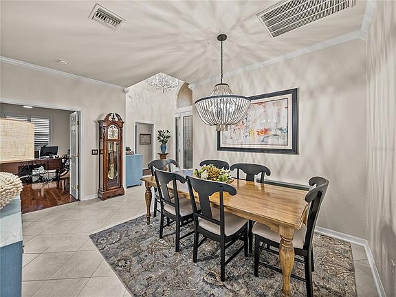 Resort-Style Living in Lake Ashton's 55+ Community Golf, Pools & More! The CDD bond is paid in full! This move-in ready 3-bedroom, 2-bath home features a stunning decorative glass entry door with twin sidelights and an arched transom window that welcomes you into the grand foyer filled with natural light. The open floor plan features ceramic tile throughout the main living areas, beautiful crown molding throughout, plantation shutters and updated light fixtures and fans. The kitchen is designed for both function and style, boasting 42” cabinets with crown molding, granite countertops, and upgraded stainless-steel appliances. Plus a closet pantry and inside laundry with additional storage space. The open living and dining areas flow seamlessly, making this home perfect for entertaining. The primary suite offers a true retreat with double entry doors, two walk-in closets, and an en-suite bath with dual vanities, a garden tub, and an oversized shower. The two additional bedrooms are located near the front of the house and one can easily be used for an office, den or craft room to suite your needs. Enjoy year-round Florida living in the enclosed Florida room with tile floors, or step outside to the pavered patio for relaxing or grilling. Recent updates add peace of mind: roof (2021), A/C (2021), hot water heater (2022), and garage door (2025). Residents of Lake Ashton enjoy a vibrant lifestyle with 2 18 hole golf courses, indoor & outdoor pools with hot tubs, tennis, pickleball, racketball, fitness centers, and endless social activities. In addition there is a restaurant inside the clubhouse and a Pro Shop and the Eagles Nest for casual eats & drinks. Don’t miss this opportunity to own a beautiful, well-maintained home in one of Central Florida’s most sought-after 55+ communities!