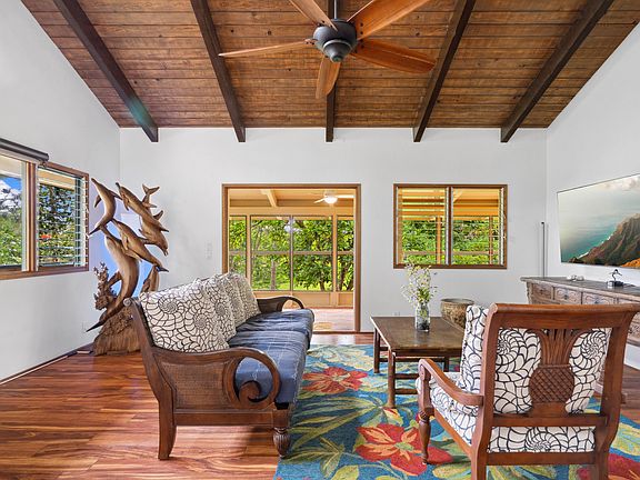 NORTH SHORE GEM-HUGE PRICE REDUCTION-PRICED TO SELL<br><br>Nestled in the lush rolling hills of Kilauea, this serene and beautiful home offers a luxurious, treehouse-like living experience. Surrounded by greenery and tropical plants, every window provides breathtaking views, creating a peaceful and private sanctuary.<br><br>The home's design captures the gentle trade winds and cooling breezes that flow throughout the space. A nearby stream adds to the tranquil ambiance with its calming sounds, without posing any flood risk. During big swells, you can even hear the ocean waves echoing from the nearby surf spot.<br><br>The main level offers a large primary suite with ensuite bath, guest room, office and a loft. The spacious kitchen is bathed in natural light, while the long screened-in portion of the wraparound lanai offers an ideal space for indoor/outdoor living. Host family dinners at the 8.5 ft. long monkey pod table on the screened lanai. The loft area, complete with a fireplace and a Murphy bed, provides a cozy retreat.<br><br>The lower level offers a charming 1 bedroom guest house, a large walk-in pantry, and ample storage space. Woodworking shop offers a nice spot to create.<br><br>The exterior of the home is a wellness haven with a cold plunge tub and a relaxing hot tub. The expansive yard, recently refreshed with new grass over a brand-new septic system, offers plenty of space for gardening and features guava, tangerine, lemon, lime, mango, avocado, and coconut trees. <br><br>The driveway accommodates several cars, and the two-bay carport provides shaded parking and extra storage for beach items, garden tools, and more.<br>Conveniently located just minutes from the restaurants and stores of Kilauea, and only 15 minutes to Hanalei and 20 minutes to Kapaa town, this home is a must-see in person.<br>Owner financing option:At least 20% down. A 6.00 % 30 year loan. Or a 5.00% 15 year loan. Agents read the private remarks and share with Buyers.