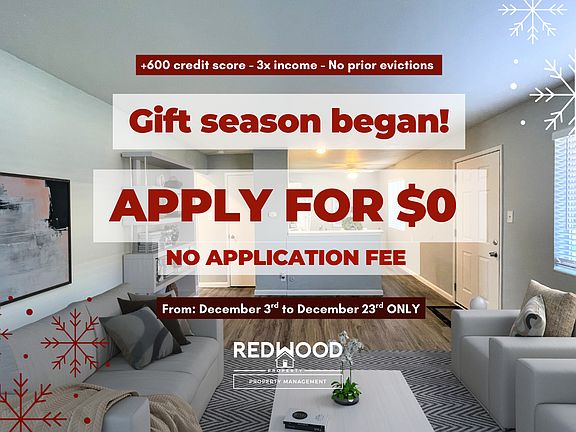 | GIFT SEASON IS HERE, $0 APPLICATION FEE IN ALL APARTMENTS |