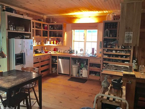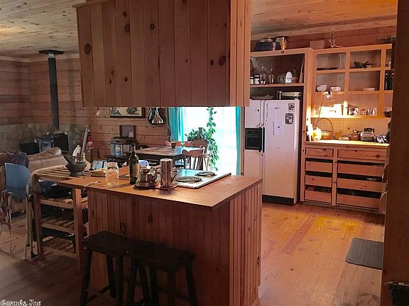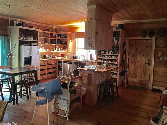 Very unique piece of property! Custom built log cabin home, loft ceilings, butcher block custom counter tops. Completely open floor plan, wood burning fireplace, perfect get away cabin for anyone. Sq. Ft. approx. measuring encouraged.