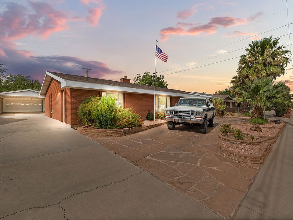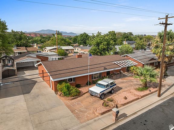 Retro Rambler | Built in 1972 and still bringing the charm, this classic brick beauty sits right in the heart of St. George. Inside you'll find 4 bedrooms plus a bonus 5th room or potential casita with its own entrance, perfect for guests, a home office, or that moody teenager. The inside got a full glow-up! New kitchen top to bottom! All new appliances, engineered hardwood flooring, carpet, tile & fixtures, but we kept the character. Think of it as a facelift with soul. The large & charming backyard has raised garden beds, a greenhouse, and plenty of room to roam. Just 2 miles from Utah Tech and walking distance to schools, parks, and shopping. No HOA, but a whole lotta charm and all the modern updates where it counts.