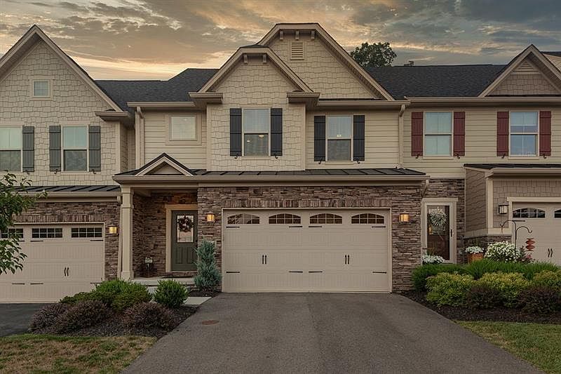 Stunning stone and HardiePlank siding Griffin Hall carriage home is loaded with upgrades and extras! The 1st floor owner's suite is must see, with a 4' ext, crown molding and tray ceiling, and a custom built-in walk-in closet. This home also boasts a two-story great room, with an 8' ext, cathedral ceiling, and fireplace. An inviting two-story entry greets you into this 4-bedroom Townhouse, with 9' ceilings on the 1st floor, large KIT w/island, crown molding, granite countertops, double oven, and all SS appliances. Additional features include a built-in buffet and wainscoting in the dining room, 4" hardwood flooring, custom shelving, and arrival center in the mud/laundry room, wrought iron staircase to the 2nd floor loft that overlooks the great room, 2nd & 3rd bedrooms, full bath w/dual sinks, finished LL GM w/wet bar, wine rack and amazing space to entertain w/full bath, 4th bedroom in the LL could be converted to a den, concrete patio, and tons of storage! Super convenient location!