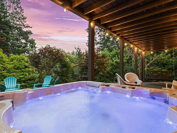 This home is brimming with charm, offering four spacious bedrooms including a king-size bed, three queen beds, a bunk bed, and a sofa bed. Enjoy mountain views from the hot tub, three full bathrooms, two fully equipped kitchens, and an open living room with mountain-inspired decor. The property also features a fire pit, high-speed Wi-Fi, a custom arcade game with 20,000 games, three smart TVs, a Keurig coffee bar, and an outdoor patio swing. The downstairs area includes a separate apartment-like setting with its own kitchen, bathroom, dining room, and living room. The kitchen is fully stocked with high-end Cuisinart cookware for memorable home-cooked meals.