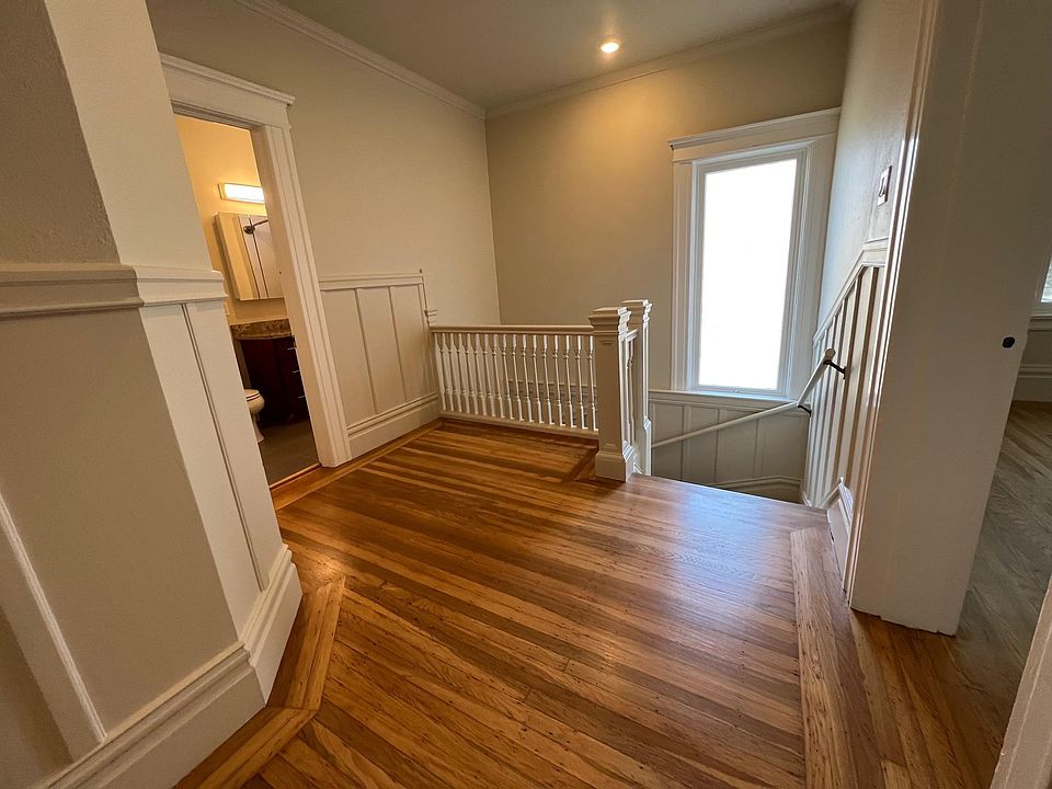 This light and bright 2 bedroom 1 bath unit features a bonus office/den space and living/dining room. Remodeled kitchen, dual pane windows, gorgeous hardwood floors. street parking only. Shared Coin-Op Laundry in building.