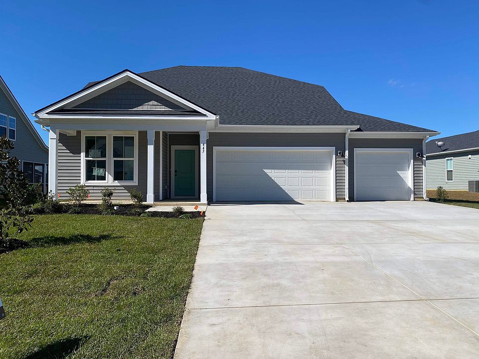 This beautiful Avondale plan offers a tranquil setting for evenings on the large covered rear porch. Looking for a 3rd car garage, this home has it. Featuring lovely and durable LVP throughout the main living areas, this home is light, bright, and airy, thanks to the 12-foot gathering room ceiling and 6-foot tall windows, complete with tons of upgrades. The first floor primary suite includes a walk in shower, dual vanity, and walk in closet. The kitchen is equipped with a quartz countertops, pendant lights over the island, backsplash, and stainless steel appliances and a walk in pantry. 2nd bedbroom and study are also on 1st floor. The second floor boasts a large bonus room, bedroom and full bathroom, Located in Chestnut Farms, only 7 miles from the beautiful beaches of Arcadian Shores, and a short drive to all the Grand Strand has to offer. **Photos of another Avondale; colors and selections may vary