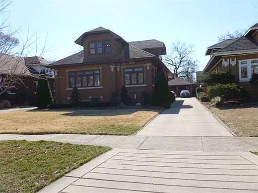 The classic brick bungalow w charm galore. Sun rm, Living rm, Dining rm with hardwd flrs, coved molding. Stain glass in Living rm & Sun rm. Kit with pantry. 2 bedrms on 1st flr w large closets + tandem rm hardwd flrs, full bath. 2nd flr w dormer has 3 large bedrooms, full bath, hardwood flrs. Lg storage area on 2nd . Large full basement with tile floor. 2 car garage. Protection agreement for appl's until 11/12/2013