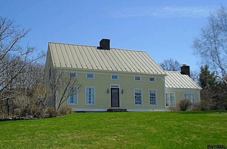 This beautiful custom built eyebrow colonial sits high on a hill with commanding views of farmland, woods and Catskill Mtns. Built in 1992 by the current owners the home has open living on the first flr with formal liv rm with gas frpl, formal dining rm, den, full bath, laundry/craft rm, foyer, kitchen w/center island and sunny breakfast rm. Master bed suite is on the second flr w/closet and full bath. Two other generous sized bed along with full bath. Full Basement. 5.81 acres. Inground pool, 2 car garage