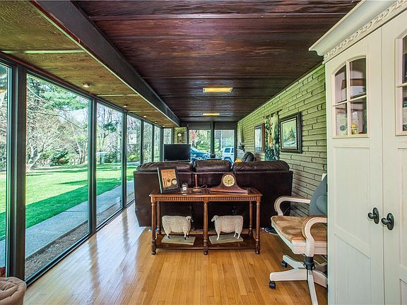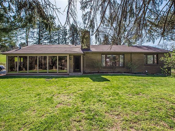 This gorgeous, quality ranch home sits atop a private 2 acre lot surrounded by lush woods, fruit trees, & beautiful landscaping. One owner for the last 45 years, this home's updates were made with quality in mind. The custom kitchen has granite countertops including 2 granite islands. From the wood cabinetry, imported Italian tile flooring & marble backsplash the kitchen is a dream! The living room & bedrooms are surrounded with beautiful crown molding & gleaming oak hardwood floors. Natural light flows in this home thanks to the three Anderson French Doors. The scenic yard can be enjoyed from one of 3 outdoor living spaces; a patio, screened porch, & 4 season room. 4 season room includes a Franklin Stove. Home includes 2 gorgeous stone fireplaces, one gas & one wood burning. The upstairs bathroom is light & airy with Traverteen tile & Azec panels. Finished basement w/ family room. New asphalt driveway. You can't go wrong with this sturdy home built of redwood, brick, & plaster walls.