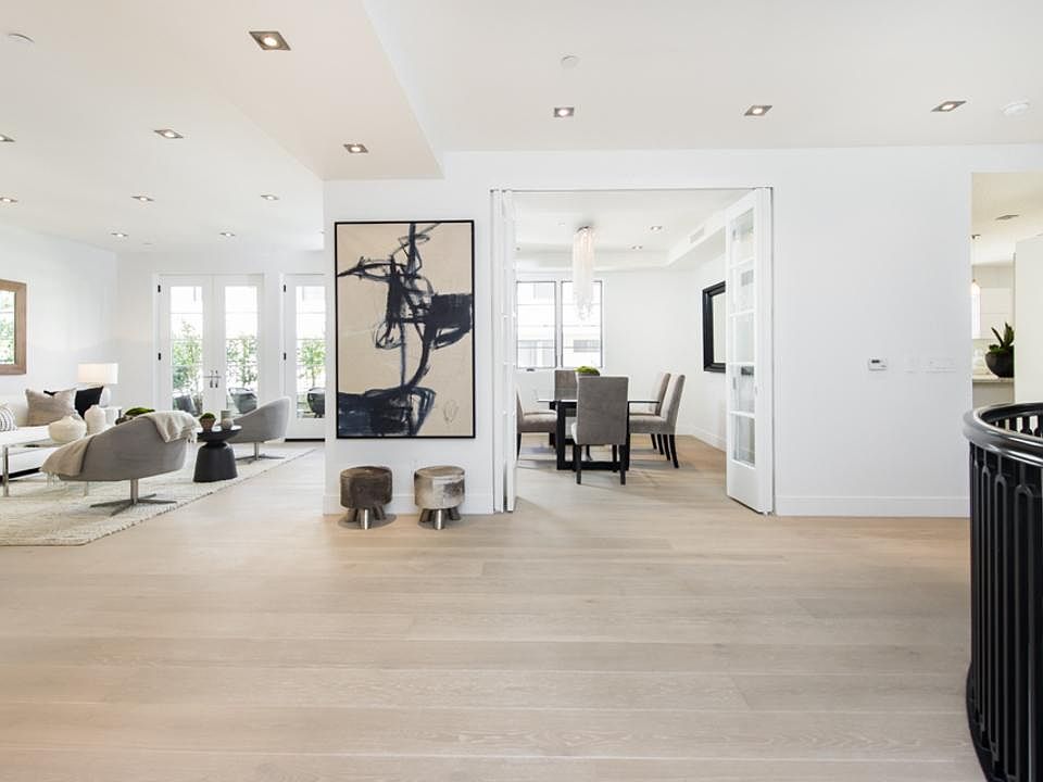 Amazing opportunity to live on beautiful Palm Drive in this newer Modern doorman building. This totally remodeled, 2 story duplex with 3brs is breathtaking and offers every modern amenity important to today's luxury buyer. Only 13 private residences. This home offers high ceilings, a large open living room, dining room, top of the line chef's kitchen, which opens to family room - with tons of light from surrounding windows. The sweeping staircase with custom iron work takes you to the most luxurious master suite, huge walk-in closet, and a gorgeous spacious bath. 2 additional bedrooms and baths all connect, making the perfect floor plan. The best Beverly Hills location and quality designer look and materials make this a rare find.