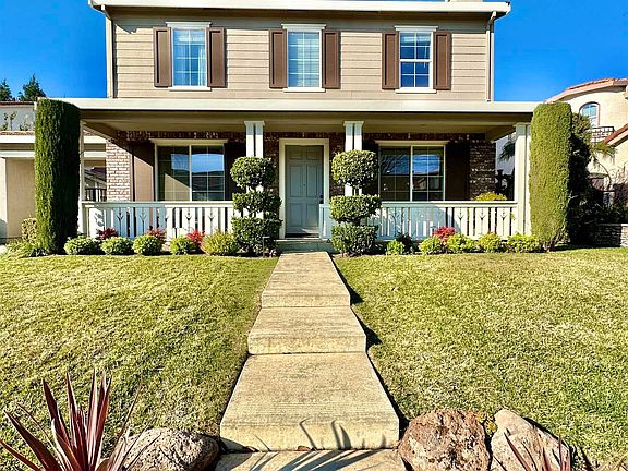 Absolutely stunning home in court location of Lourence Ranch! So many extras to enjoy! Fantastic curb appeal with front porch and gated driveway. Beautiful engineered wood floors as you enter the home with crown molding throughout. Formal living room plus formal dining room with custom wainscoting. Magnificent Chef's kitchen with quartz countertops, custom gray cabinets and upgraded appliances including Wolf stove. Dining area with plank accent wall and fabulous lighting. DOWNSTAIRS BEDROOM and FULL BATHROOM that has been recently updated. Gorgeous new staircase leads up to loft, two bedrooms and spacious primary bedroom. Primary bathroom has dual sinks and walk-in closet. Your outdoor entertainment oasis includes a sparkling pool and hot tub plus two covered patio areas. Additional room can be used as a cabana, office, gym or playroom. Gated front courtyard area also includes an adorable "craft shack." Garage has extra storage and epoxy floors. This home has too many extras so you will have to see it in person. You are going to love it!