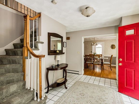 Welcome to this custom-built Contemporary Colonial, where timeless design meets modern comfort. A charming front path sets the tone for a light-filled, thoughtfully designed interior. Step into the stunning home that fits many lifestyles. A spacious family room featuring a cathedral ceiling, a skylight, and a cozy gas fireplace—ideal for entertaining or relaxing. The open floor plan flows to the dining area and kitchen, which features stainless steel, granite countertops, a custom backsplash, and an eat-in space—perfect for casual meals or dinner parties. Custom touches like French doors, crown molding, and bay windows enhance every room. Enjoy a formal dining room and a relaxed living room. Upstairs, the primary suite includes two walk-in closets and a soaking tub. Two additional bedrooms and a full bath complete the second floor. Additional features include a utility room, workshop, and a partially finished basement ideal for a gym or playroom. Outside, unwind in the 3-season room, on composite decks, or in the endless swim spa. A flat, private yard is great for games or gatherings that borders acres of woods & fields. A few of the updates include a newer roof, Buderus boiler, and mini-splits. Located near parks, shopping, Amtrak, major routes, and the University of New Hampshire (UNH), this home is built for comfort, style, and everyday living. This amazing home is priced $35,000 under the appraised value. Open house on Nov. 1 & 2, 12-2.