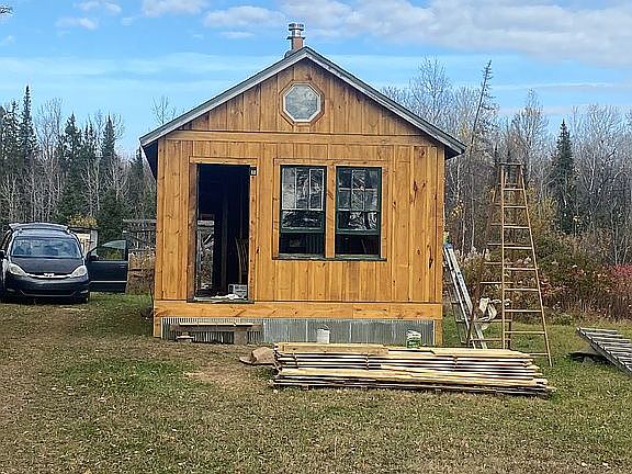 An unfinished cabin sitting on 40 acres 6 miles NW downtown Two Harbors. The Little Knife runs through land. New roof, wood stove & stainless liner & siding. Two side by side 5 acre lots extending north another 30 acres.