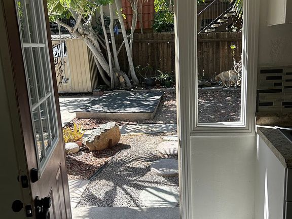 This little house is tucked between a front house and a back house. It shares a fenced in yard and a laundry room.