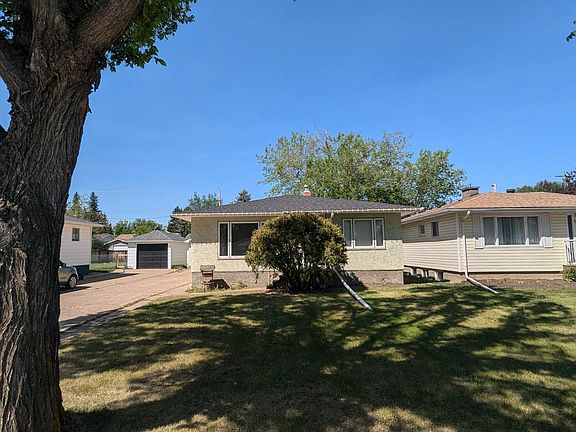 South side bungalow with mature trees on one of thee nicest roads in town! Upgrades and features throughout the years including shingles, 100 amp electrical, plumbing/light fixtures, furnace, hot water tank, AC unit, paint flooring and more. Two bedrooms, nice and bright living room, kitchen with dining area and 4 piece bath on the main. Large rec room, bedroom, laundry and storage in the basement. Big yard with tons o parking on the front driveway to the single car garage. Back alley access. Walking distance to schools, pool and shopping.