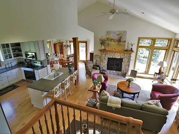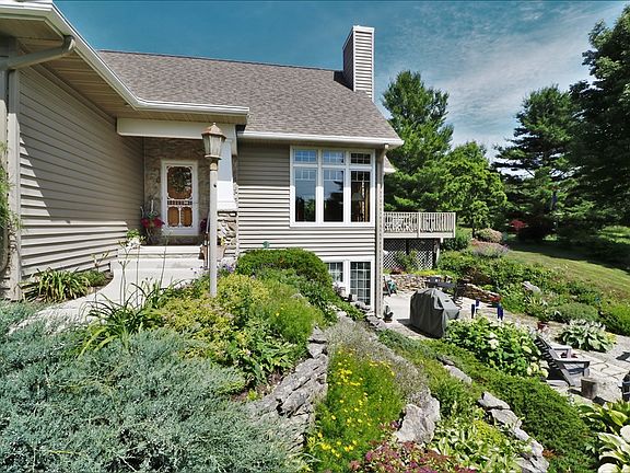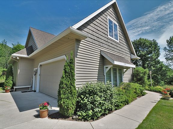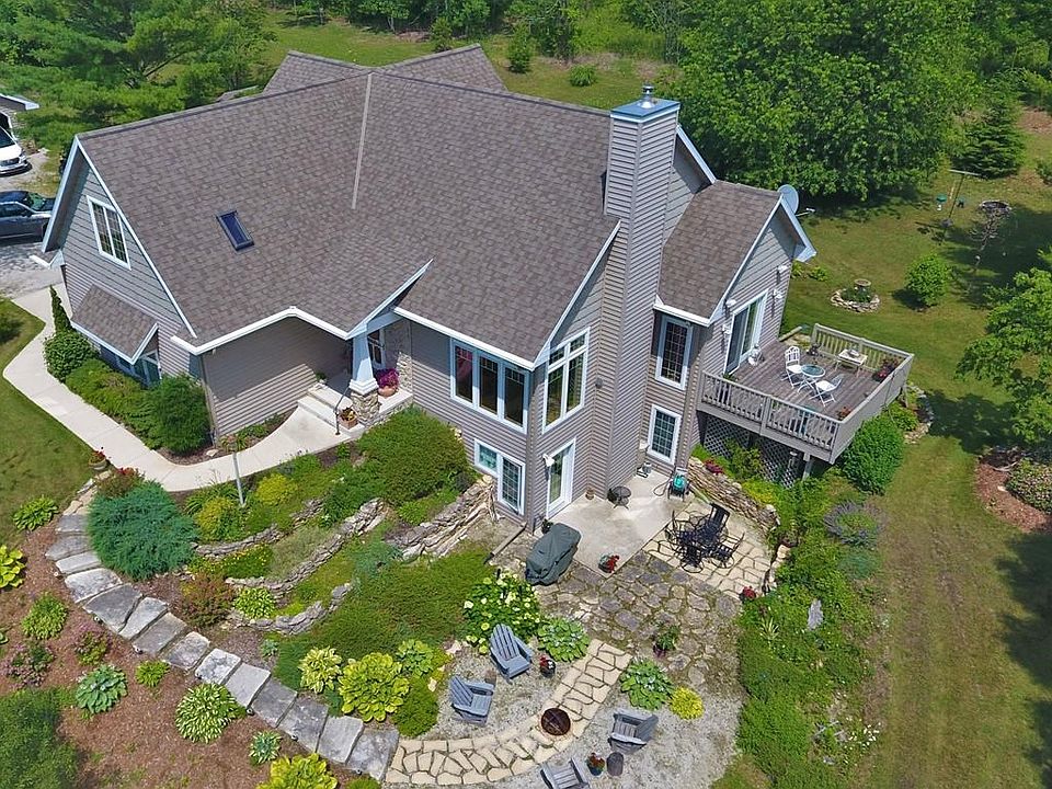 Amazing sunsets from this 2008 open concept-custom built home that's nestled on a hill. Just minutes from downtown Sturgeon Bay this home boasts a natural park-like setting w/2.53ac & is professionally landscaped. Big Prairie windows allow views of all the wild life surrounding the home. Cozy FP in living room w/heatilator that also heats the LL. Large windows & patio doors lead to deck w/lovely bush & floral views. Kitchen has 3 pantries & new SS appliances. Main level living w/master bedroom,bath & laundry on 1st level. LL family room walkout leads to patio w/firepit. Dual zoned heat, new Leaf Guard gutters, underground electric, 3yr furnace, 2 yr water heater 2020 water softener. Detached garage/workshop is insulated & heated.