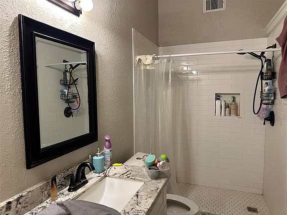 Welcome to this beautifully upgraded single-family home nestled in the heart of Southwyck, Pearland. Built in 1986, this charming residence offers 1,921 sf of living space. The home features 3 bedrooms and 2 full baths, thoughtfully remodeled in 2020 with high-end finishes and modern conveniences. Wood-look tile flooring throughout, granite countertops in kitchen and bathrooms, soft-close cabinetry, stacked stone fireplace and elegant glass front door fresh neutral interior and exterior paint, new windows. Home has a newer AC unit. Covered patio with wood ceiling accent. This move-in-ready gem combines timeless style with modern upgrades, in a sought-after neighborhood. Call for your private showing today. You don't wanna miss this one.