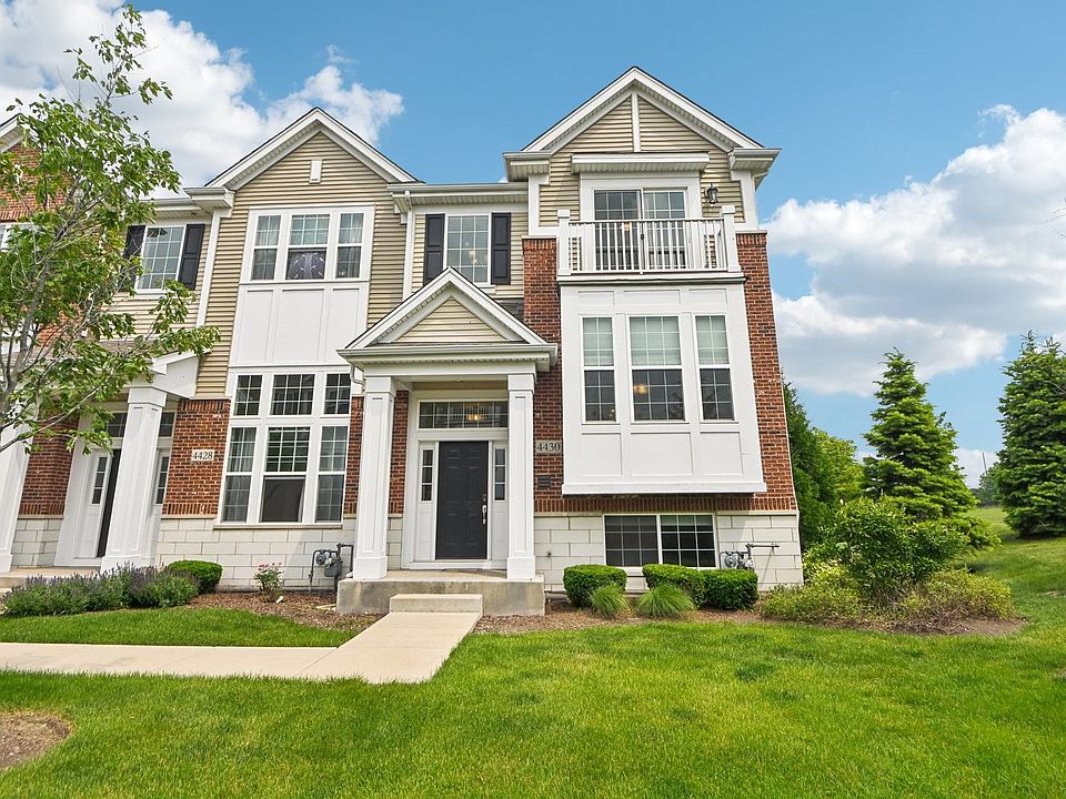 Welcome to this charming townhome nestled in the heart of Naperville. As an end unit, it enjoys extra privacy and natural light, while its two spacious balconies offer perfect spots for morning coffee or a peaceful evening unwind. Step inside to find a thoughtfully designed layout with elegant upgrades throughout. The chef-inspired kitchen features sleek 42-inch cabinetry, gleaming quartz and engineered marble countertops, GE stainless-steel appliances, and a stainless-steel farmhouse sink. Upstairs, the luxurious primary suite awaits with a spa-like bathroom boasting dual vanity sinks and a generous walk-in closet. The English basement offers a versatile bonus space bright enough for a playroom, home office, or guest bedroom, and conveniently connects to the garage for seamless access. Throughout the home, crown molding adds a touch of classic elegance, while the carefully maintained landscaping, complete with a peaceful pond and community park, ensures beautiful curb appeal thanks to the HOA's diligent care. The home is located within the sought-after District 204. It's also just a few minutes drive from everyday conveniences, including Amazon Fresh, Jewel-Osco, AMC Theatre, Naperville Crossings shopping, and the 95th Street Public Library. Don't miss the opportunity to make this wonderful home yours. Schedule your private showing today!