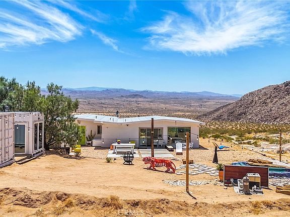 Discover a one-of-a-kind opportunity in the secluded Landers area with this captivating property, currently serving as both a sought-after wedding venue and thriving Airbnb. Nestled amidst BLM land ensuring unparalleled privacy, this home is a sanctuary against a backdrop of majestic boulders and panoramic vistas. Set on 5 acres, this residence offers not just a home, but a lifestyle. Imagine waking up to stunning desert sunrises and enjoying the peace and tranquility that comes with no nearby neighbors. The property's proximity to Pioneer Town, Pappy and Harriet’s iconic bar and restaurant, and the recreational delights of Big Bear Lake ensures endless entertainment options within a short drive. Also the closest rental to the famous Giant Rock and Integratron locations. Ideal for those seeking a blend of serenity and adventure, the home features spacious living areas and ceiling to floor windows. Outdoor enthusiasts will appreciate expansive patio spaces, views of the desert landscape, and the relaxing cowboy pool, perfect for entertaining or simply unwinding in nature’s embrace. Rarely do properties with such versatility and natural beauty become available. Whether you envision continuing its current use or transforming it into your private oasis, seize this opportunity to own a slice of Landers paradise. Schedule your private tour today and experience the allure of this exceptional property firsthand.