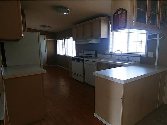 Doublewide mobile with lot's of potential! Large lot completely fenced. Attached garage is large enough for 3 cars. Garage has work benches and 2 - 220 Electric outlets. Large Master bedroom, soaking tub in master bath and separate shower. Lots of storage and cabinet space. Needs some work but could be a really nice home with a little elbow grease!