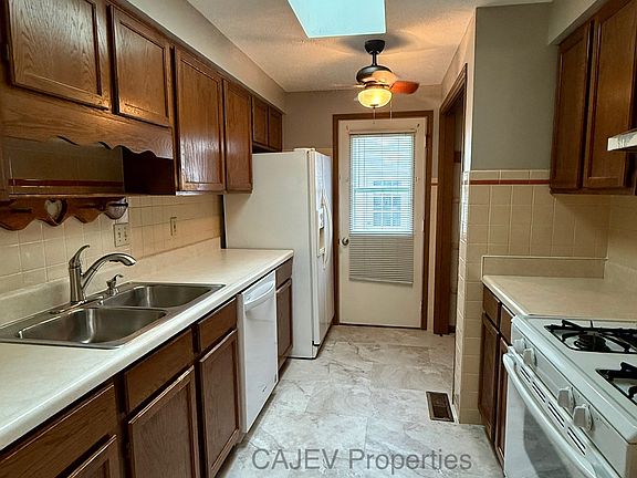 2BR 1.5 BA in quiet 55 & over NorthRidge Senior living condo community. Hardwood floors in large living and dining room areas. Galley kitchen with skylight. 2 spacious bedrooms with ample closets. 2 car attached garage. Handicap accessible. No pets. Appliances included.