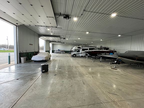 5 acres zoned Agricultural with a huge commercial grade pole barn. This 60 x 122 ft. shed has it all from heated concrete floors, full bathroom with shower and laundry area, 200 amp electric piped thru out the building in conduit. It also has all LED lighting on the 16 foot high ceilings, 3 large overhead doors with openers, 2 floor drains in each bay, full security system. Hot and cold water plumbed thru out. The property has frontage on 2 black top roads, has a large heavy duty parking lot, a small farm pond, a good well and septic and a residential building allocation for a single family dwelling in the highly sought after Nettle Creek School district. A second 5 acre parcel with another residential building allocation is also available next door. Proof of funds or pre qualification letter before showing. Call Listing Broker, Mark for more information.