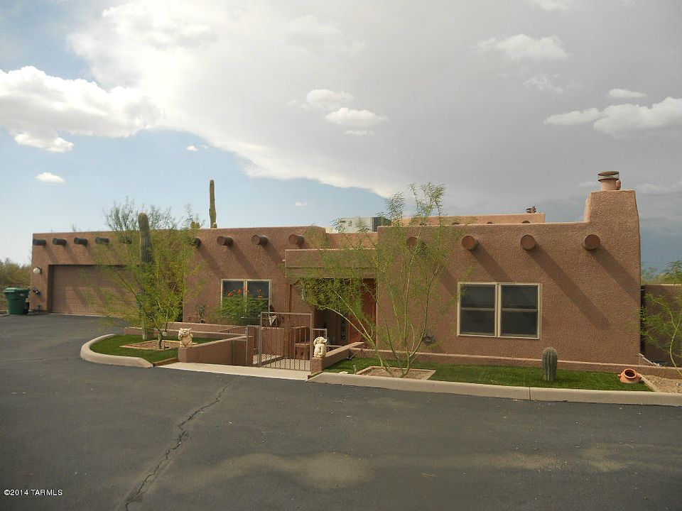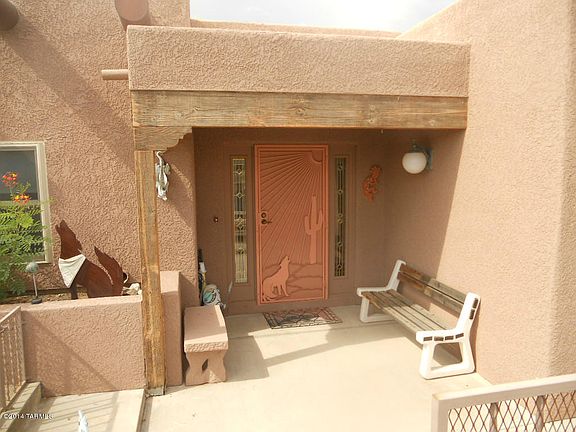 This house is for the buyer that wants an original. This house is no square cookie cutter home. Designed around an octagon, as you walk in to the entry rooms shoot off in various non-perpendicular directions. Main house has 3 bedrooms and 2 baths with a large great room, upgraded kitchen with maple cabinets and granite counters featuring a large breakfast bar. Off of the great room is a sitting area with a wall of windows looking out to open desert and the Catalina Mountains. There is a spacious, separate guest house with a living room, kitchen, 1 bedroom and a bath. The owner rents this as a vacation rental for $1,000.00 per week and has many repeat customers every year. This house is one of a kind and has income potential as well, ACT FAST.