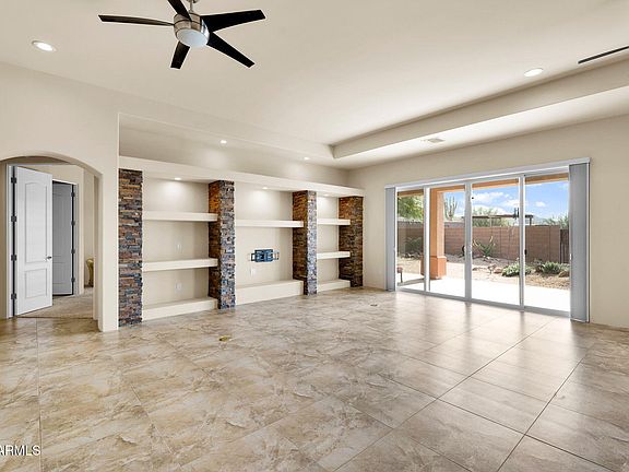 Stunning 4 bedroom, 3.5 bath home on over an acre of beautifully landscaped and fenced grounds with mountain views. Thoughtfully designed open floor plan with 12' ceilings and a spacious great room perfect for entertaining. The gourmet kitchen features granite countertops, upgraded cabinetry, induction cooktop and elegant finishes. The primary suite offers a custom walk-in closet and a luxurious bath. One secondary bedroom includes a private ensuite, while two additional bedrooms share a Jack & Jill bath. Designer touches include wood shutters and high-end upgrades. Outdoor living features a fenced private play pool with safety cover, mature landscaping, and plenty of room to relax or play. Car and RV enthusiasts will appreciate the 4-car garage with EV charger & 2 bay detached RV Garage, large enough for all your toys. Owned solar panels provide energy efficiency. Shared well. Exceptional property combining luxury, functionality, and space.