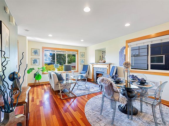 A rare find! This turn-key property is tucked away safely in the Heart of Alaska Junction with a 98 walking score that puts you steps from Shopping & entertainment & restaurants. The home is perched high above all on a quiet street offering total privacy, also an excellent mountain & territorial view. East-facing spacious 3 Bds/2.25 Baths filled with natural lights. 1 car garage & Ez street parking. The spacious entry & good-size bedroom with ¾ bath highlight the entry-level. Great outdoor spaces with a large, fenced patio perfect for BBQs; 2nd-floor living space boasts gleaming hardwoods, kitchen w/eating-bar~Alder cabinets~SS appl & cozy gas fireplace; Upstairs 2 bedrooms with vaulted ceilings & full bath & covered view deck. No HOA dues!